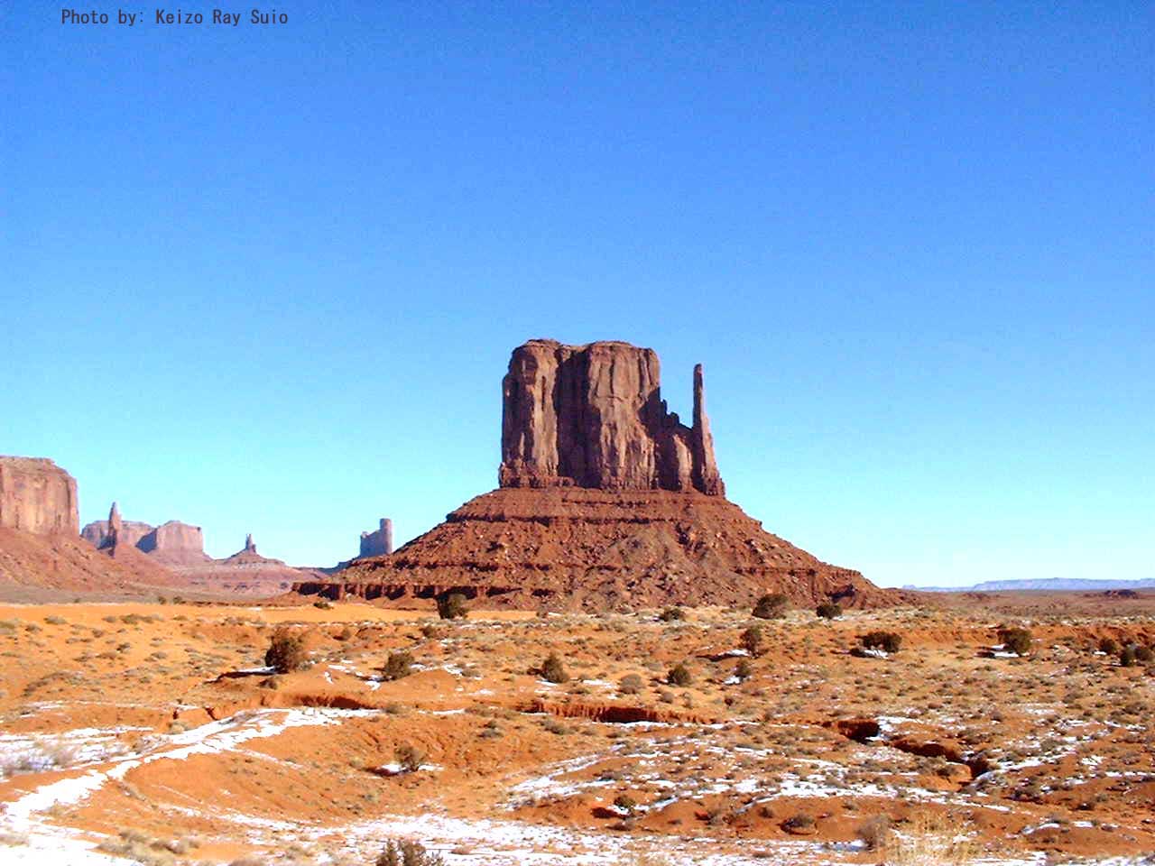 | 赤みをおびた岩山の造形美。 地平線。 数々の西部劇の映画撮影は勿論、誰でも一度はテレビや映画で見たことのあるすばらしい景色を実際に皆さんの目で360度画面として楽しんでください。 ジープツアー(オプション)のガイドも勿論地元インディアンでさらに奥深いモニュメントバレーを探索可能。 昔から先住インディアン達が見てきた歴史と風景をそのまま皆さんも見ることができます。映画「駅馬車」で一躍有名になった風景。 是非、映画を見てからいらしたら! この日はナバホのインディアンレストランで昼食予定。 |